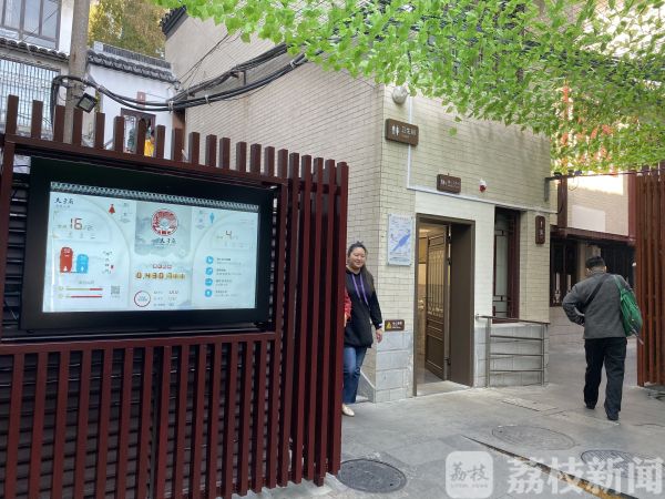 根据指示牌的指引,记者花了不到两分钟就顺利找到了夫子庙贡院街的西公厕。这是一处智慧厕所,门口的电子屏能实时显示厕所的空位。