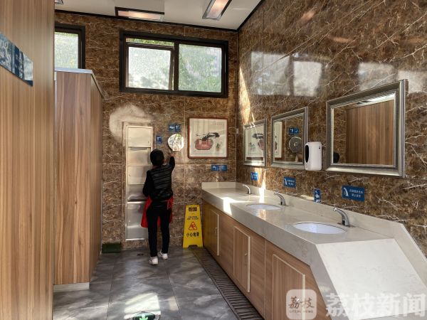 自动冲水、免费纸巾、安全呼叫器、方便母婴或是残障人士使用的洗手间,这些设施都让居民们很满意。公厕管理员杨师傅告诉记者,为了保持整洁,他们白天全时段都在保洁。“出来一个人就要进去打扫一下,就是流水式的,几乎没有休息的时间。”杨师傅说。