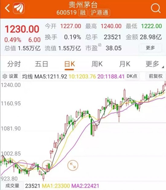 截至11月14日收盘,贵州茅台收报1230元,盘中创下历史最高价1240元,收盘市值达15451亿元。