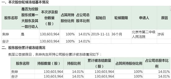 天神娱乐近日披露的三季报显示,截至2019年9月30日,普通股股东总数为51788人,朱晔持有14.01%公司股份,持股数超1.3亿股。值得注意的是,其中1.29亿股均为质押状态,且所持有的1.3亿股全部处于冻结状态。