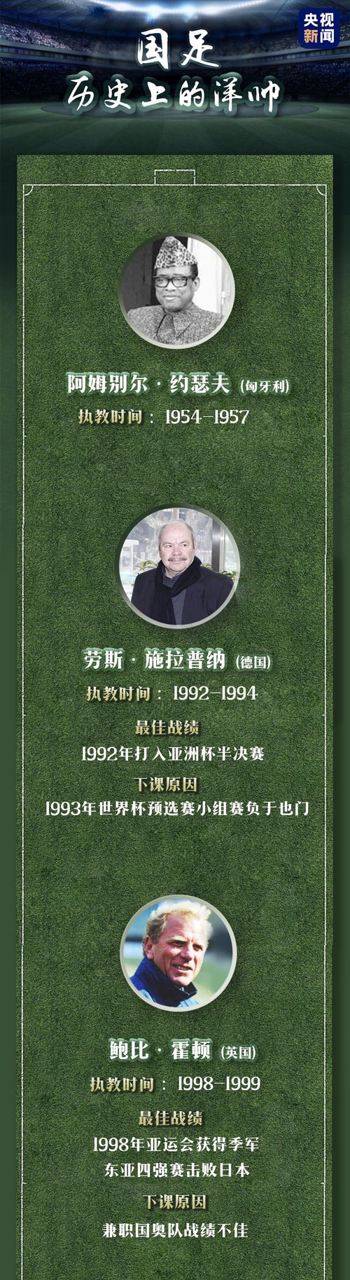 里皮不是中国男足的第一个外籍主教练,也不会是最后一个。几十年来,国足经历了不少“洋帅”,有过辉煌,也经历过惨败。