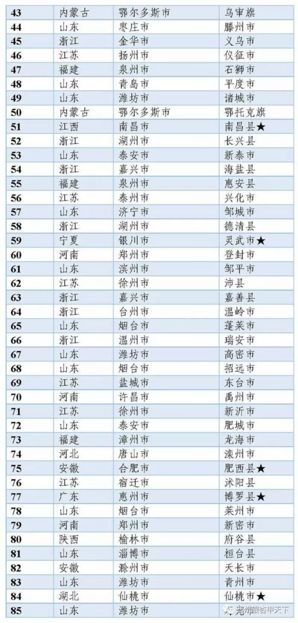 据悉,由中国信息通信研究院发布的《中国工业百强县(市)、百强区发展报告(2019年)》,是国内最权威的县域发展报告之一。报告显示,工业百强县(市)分布于16个省(区、市),苏鲁浙等经济大省继续领跑,其中江苏25个、山东19个、浙江18个。