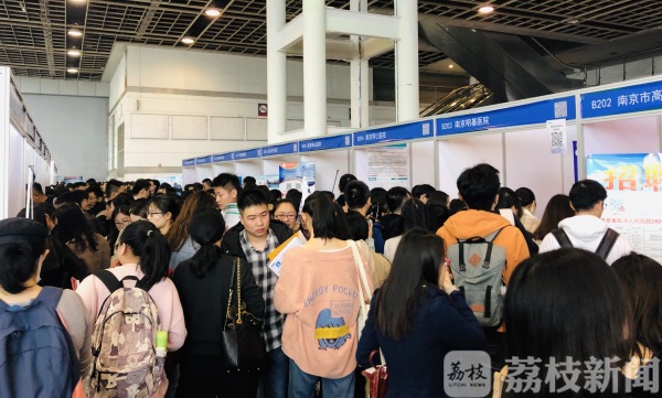 江苏省医药卫生类毕业生人才交流大会每年举办一次,是医药卫生类规模最大的招聘会,300多家省、市、县各级医疗卫生单位现场设摊,1.1万个招聘计划吸引近万名毕业生进场寻求机会。其中,超过八成岗位要求应聘者具有本科以上学历,硕博研究生需求近4000人。