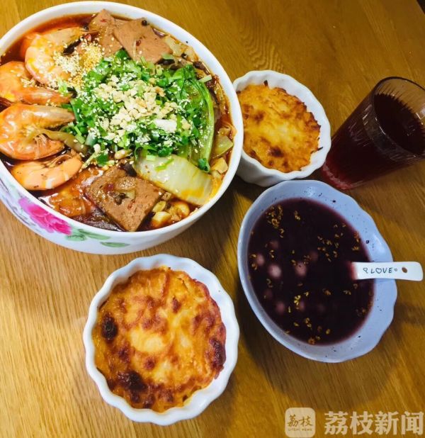 曹丽华的个头不高,圆圆的脸上架了一副眼镜,说话柔声细语,笑起来一双浅浅的酒窝。在生娃前,她在扬州某事业单位上班,女儿出生后,她就当了全职妈妈。“我们家离学校很近,中午就接她回来吃,在家吃可以更丰富一些。” 曹丽华告诉记者,从一年级开始到现在,她的“午餐记”从未“缺勤”过。