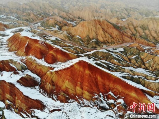 11月18日,雪落张掖七彩丹霞。杨艳敏摄