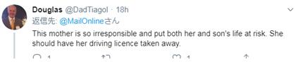 “这位母亲太不负责任了,她把自己和儿子的生命都置于危险之中。她的驾驶执照应该被吊销。”