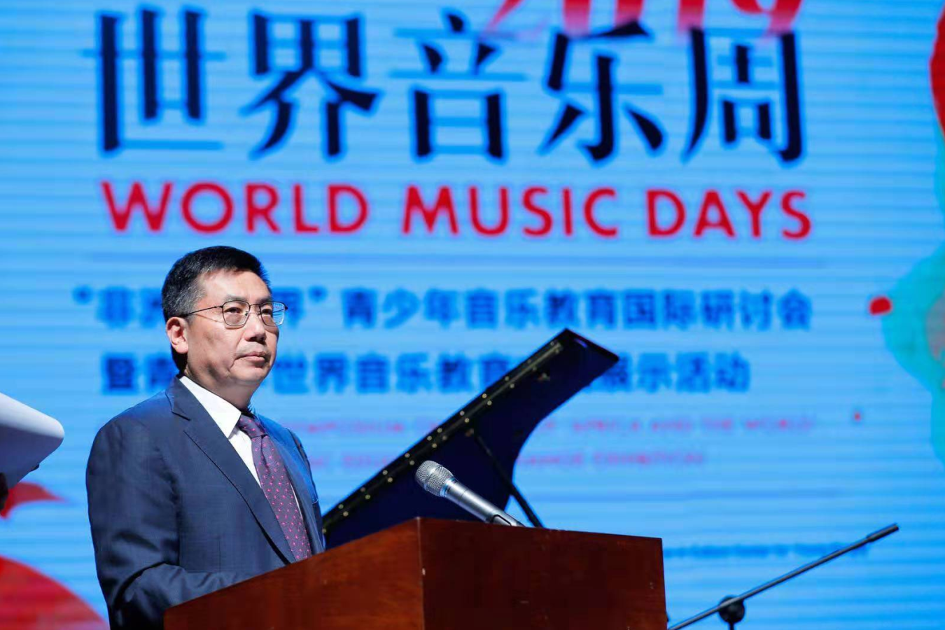 闭幕式上,中央音乐学院党委书记赵旻对来自非洲及其他相关国家和地区的音乐家与学者们表示感谢。他表示,世界音乐周是以通过走出校门、面向社会举行音乐学术研究活动的形式,搭建中非音乐交流的平台,向中国青少年儿童展现音乐的无限魅力,对筑牢中非友谊之桥,携手共兴中非文化具有十分重要意义。
