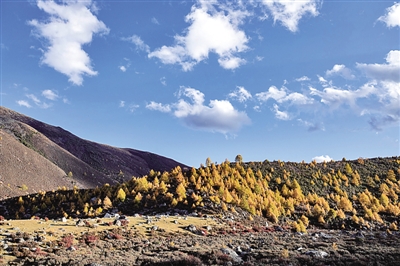 近日,四川甘孜乡城县水洼乡雨洼村呈现一片初冬美景,群山、森林在高原清澈的天光下勾勒出一幅美丽画卷。新华社记者 江宏景摄
