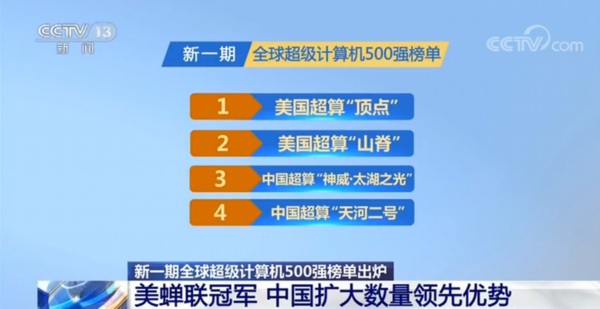 全球超级计算机500强榜单始于1993年,由国际组织“TOP500”编制,每半年发布一次,是给全球已安装的超级计算机排座次的知名榜单。中美两国在超算领域你追我赶的态势已持续数年。中国的“神威·太湖之光”曾多次夺得冠军,美国“顶点”在2018年6月首次登顶后已连续四次夺冠。