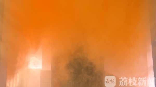 推开入户门,记者发现门外已经浓烟滚滚,两个人顺着安全出口指示的标识走,但是刚走半层不到,已经看不清脚下的台阶,眼睛也睁不开了。由于不太清楚楼下的情况,我们只能折返回屋内。这个过程中,摄像老师因为视线受影响,两次撞到了墙上。下楼逃生以失败结束。