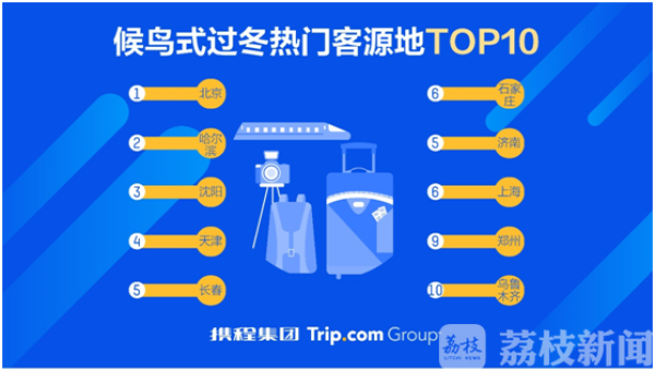 数据还显示,截至目前,北京、哈尔滨、沈阳位居候鸟式过冬客源地排行榜前三甲,第四至第十名依次为天津、长春、石家庄、济南、上海、郑州、乌鲁木齐。