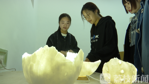 作者熊莎莲同学坦言,她的创作灵感来得非常偶然:“我小时候喜欢躺在床上看月亮,把自己的心事说给它听。接触陶艺后,有一天我突然想到,是不是可以做一件与月亮有关的作品,然后就想到了台灯。在晚上,把它放在床边,像一轮弯月,会感觉很温馨很温暖。”