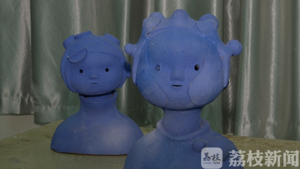 这组作品"蓝孩子",由大二学生彭欢欢创作完成,作品创意源于电影《悬崖上的金鱼姬》。当海洋受到严重污染,人类无家可归,"蓝孩子"表现出惊愕乃至恐惧的面部表情。彭欢欢说:“设计这个作品,是想通过‘蓝孩子’的表情来警醒大家,在经济发展过程中,保护环境是每一个人都应该有的意识。”
