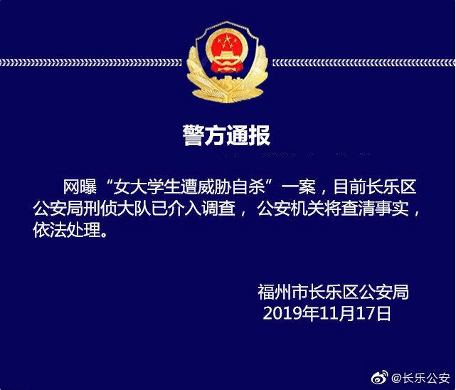 11月19日下午,记者再次尝试拨通郑某某父亲的电话,但截至记者发稿,电话都没有接通。红星新闻记者此前曾与郑某某父亲通话,郑某某父亲表示,绝不逃避该承担的责任,但他也表示,儿子在备忘录中说明图片并非裸照,还曾下跪道歉。儿子已被警方拘留,福州长乐区公安局已介入调查。11月17日,长乐公安发布警情通报:网曝“女大学生遭威胁自杀”一案,目前长乐区公安局刑侦大队已介入调查,公安机关将查清事实,依法处理。
