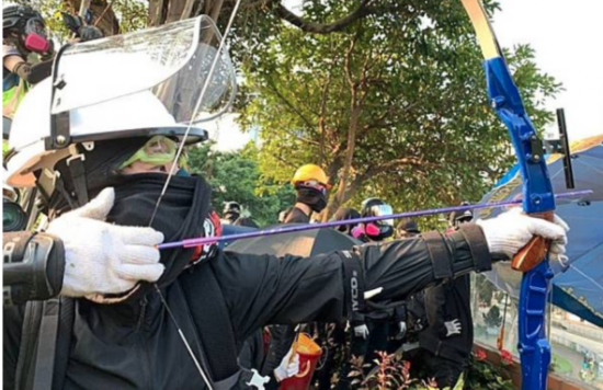 早在16日晚,港理工已经卷入激烈冲突之中。当时,暴徒“占领”校园内高处,用自制的大型弹弓,将汽油弹弹射至道路上。警方则使用了催泪弹。