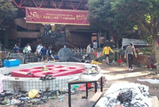 韩联社称,17日,两名韩国游客被困在校园无法离开,只好胆战心惊地在港理工过了一夜。