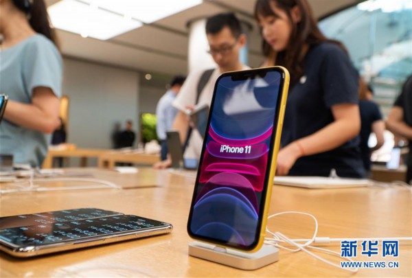 9月20日,在北京王府井苹果专卖店,工作人员为顾客介绍最新上市的苹果手机。当日,新一代iPhone 11系列苹果手机、Apple Watch Series 5智能手表等产品在中国上市销售。新华社记者 才扬 摄
