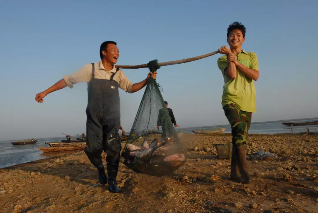 一旦开捕,花鲢、白鲢、草鱼、银鱼、青虾、螃蟹......无数肥美的鱼鲜不停地跳出水面,水花四溅。骆马湖畔笑语阵阵,鱼儿满仓,肥蟹入网,捕捞的是满船的欢畅。