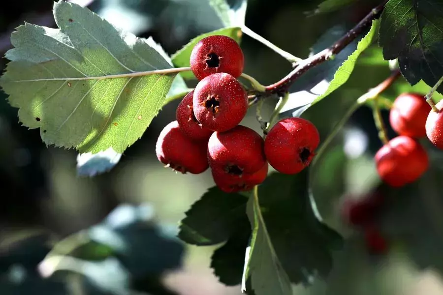 走进山楂林,红彤彤的的小果子新鲜诱人,就像一颗颗镶嵌在枝头的红宝石在阳光下闪着光,随着清风轻轻摇摆,让人心生欢喜。