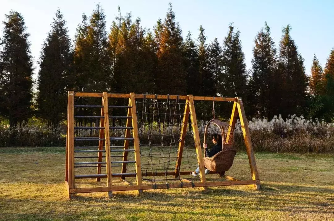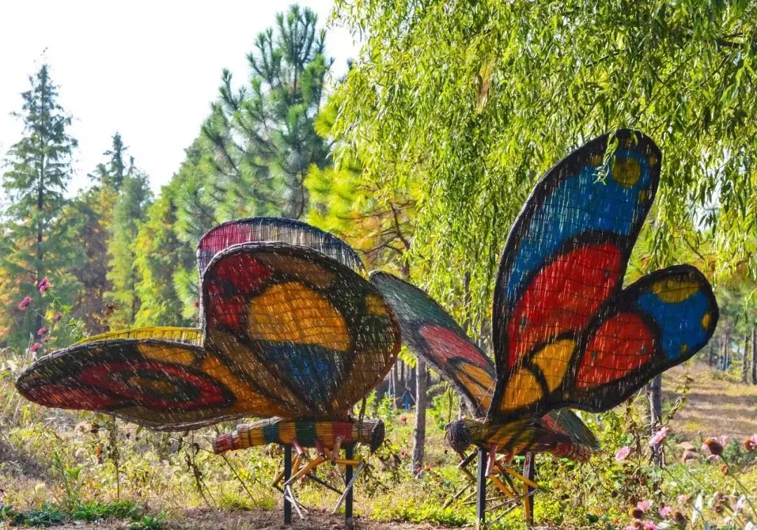 景区里除了秀丽的自然风光外,各种匠心独具的小设计也十分吸精。水杉森林、爱情公园、玫瑰园等处色彩斑斓的彩蝶;渔趣园内“双鱼齐跃”的芦苇雕塑、渔趣迷宫;露营基地的游乐场......一个个趣味盎然的作品,将这个凉意渐浓的季节点缀得更加灵动活泼。