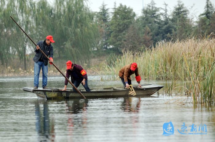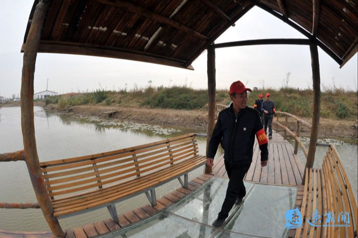 11月19日,泗洪县曹庙乡瓦庙村,乡贤护水员在水边巡查。