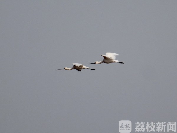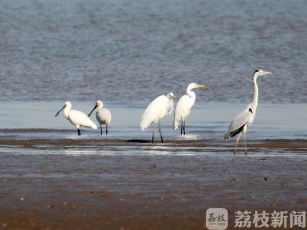 11月20日上午,在南京江北新区江滩上,一阵阵鸟儿的叫唤声,犹如大自然交响曲,妙趣横生。远远看去,它们成群成片聚集在一起,但细细一看,它们旁边却多了不少白琵鹭, 黑色的嘴长直扁平,并且扩大形成铲状或匙状,形似琵琶,人们称它白琵鹭,是国家二级重点保护野生动物,而且白琵鹭还是荷兰的国鸟,在江北新区发现比较罕见。