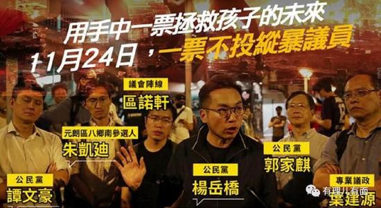 而这些撑暴纵暴的乱港分子甚至勇武暴徒摇身一变,却成为了区议会选举的参选人。有良知的香港民众和这些青年的父母们,你们必须要看清,是谁把自己的孩子变成了如此模样?你们能做的,就是用好手中的票,绝不能把香港的未来交到这些人的手中!