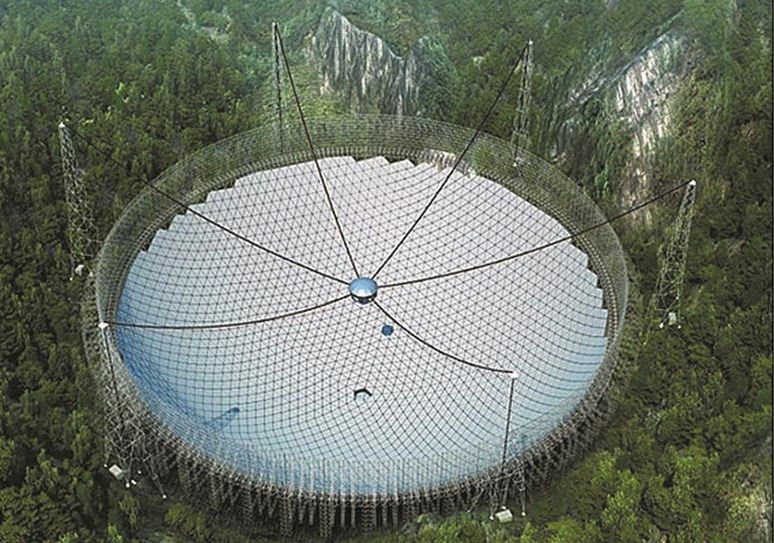 500米口径球面射电望远镜被誉为“中国天眼”,简称FAST,由我国天文学家南仁东于1994年提出构想,历时22年建成,于2016年9月25日落成启用,位于贵州省黔南布依族苗族自治州平塘县克度镇大窝凼的喀斯特洼坑中。