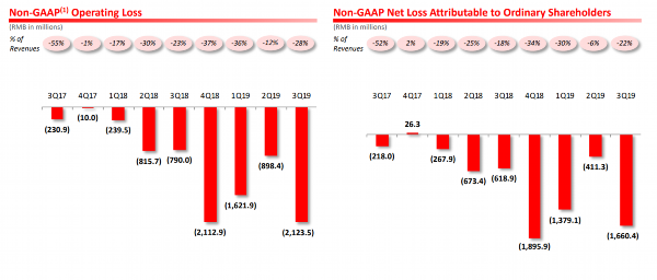 当季,拼多多归属于普通股股东的净亏损为23.35亿元,市场预期净亏损12.22亿元,而去年同期则为亏损10.983亿元。非通用会计准则下,归属于普通股股东的净亏损为16.604亿元,去年同期为亏损6.189亿元。