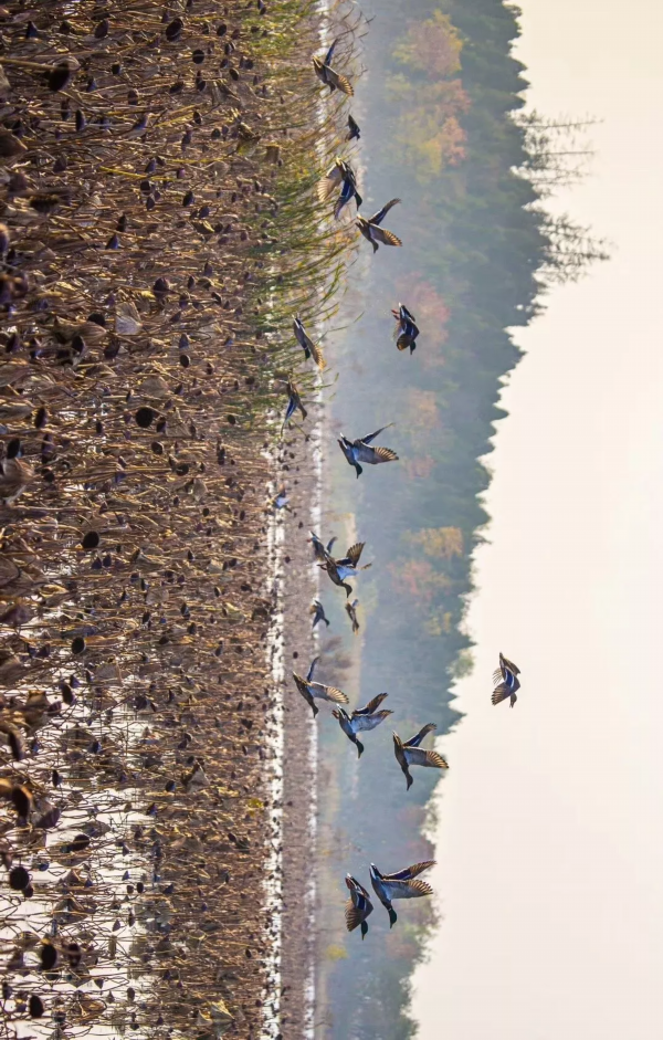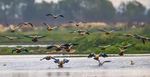 来欣赏一波洪泽湖湿地实景候鸟翩飞图~