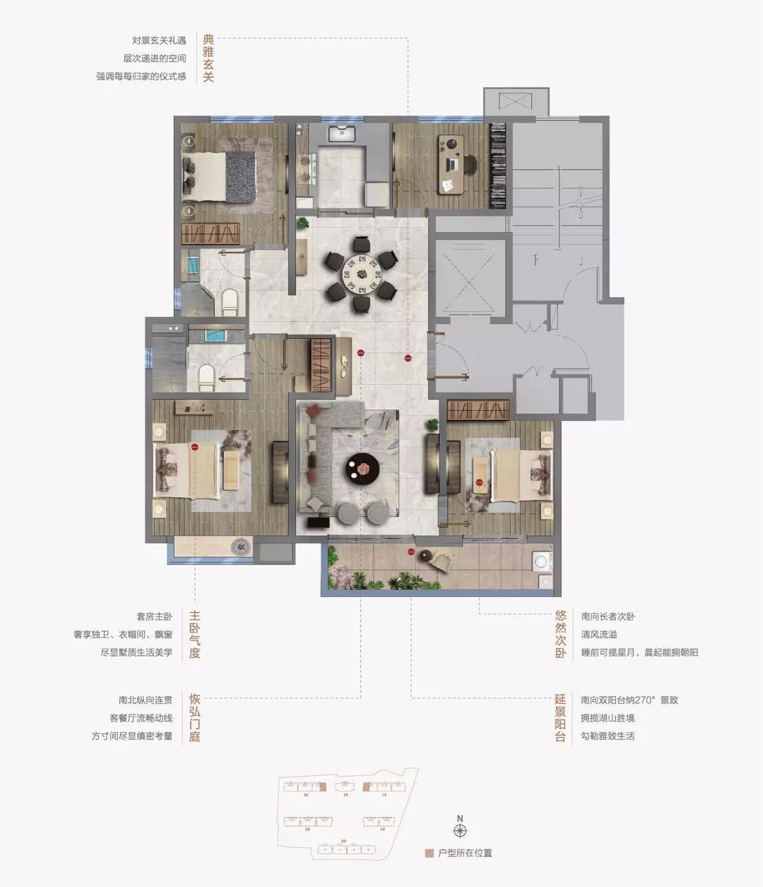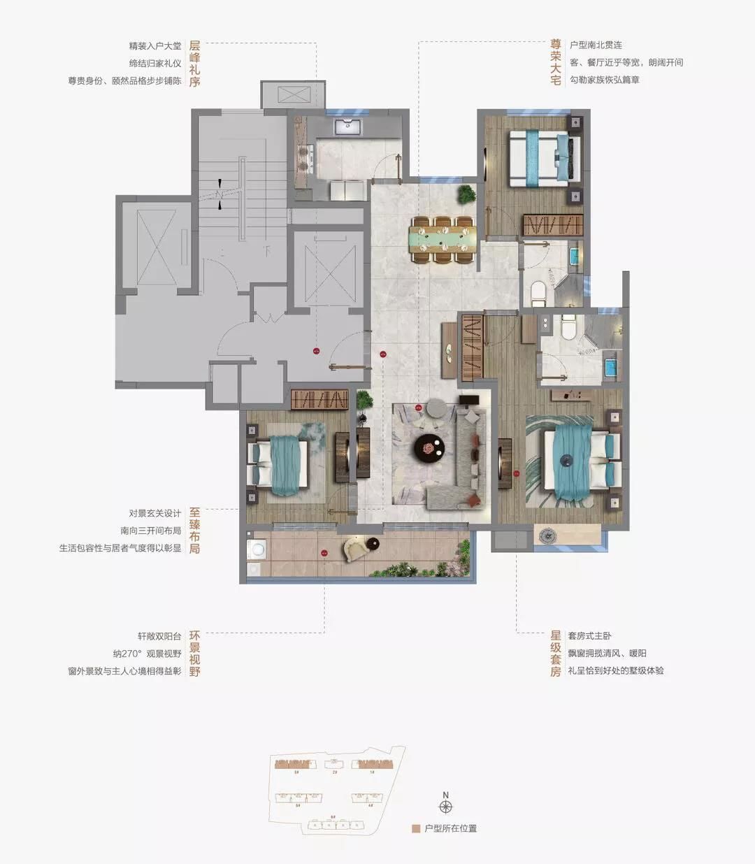 市面罕见的270°双景阳台,为生活带来更加奢阔的空间享受和精神体验。