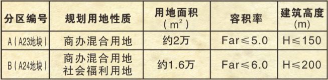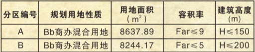 规划要点:地块分A、B两个区域,均为商办混合用地。其中A地块用地面积8637.89㎡;B地块用地面积8244.17㎡。