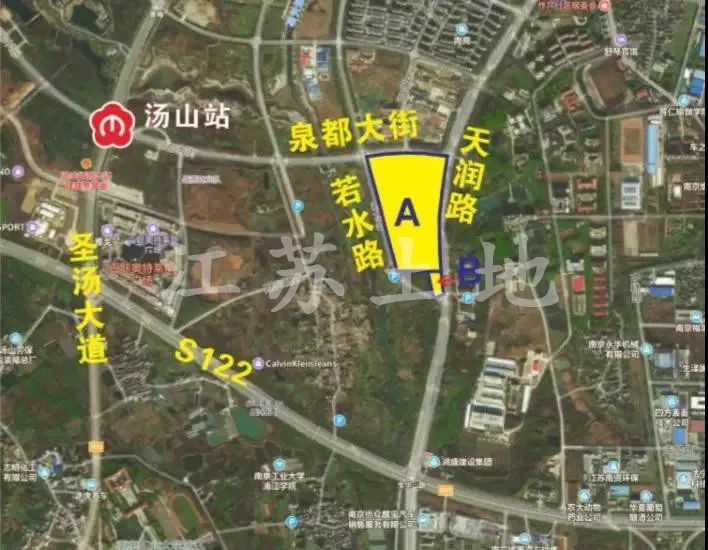 地块四至:位于江宁区汤山温泉旅游度假区,东临老宁杭公路、北临古泉路、南邻S122、西邻仙涧路。