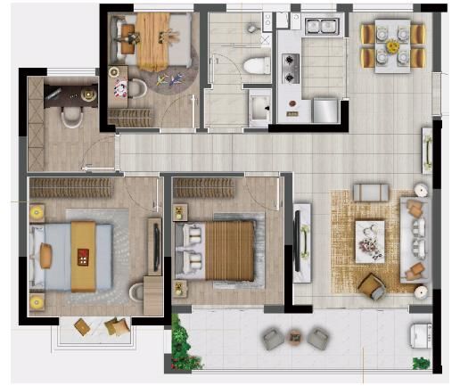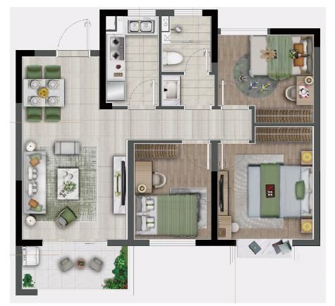 其中建面约85㎡三房两厅一卫的户型,比市面上同等面积的两室户型,在功能上更能满足生活需求。重要的是,约3.6米大开间无缝衔接阳台,且每个功能区分布合理。