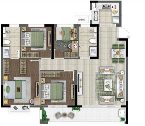 118㎡四房两厅双卫户型,全明设计,功能分区合理。目前在禄口,100多平米四房中,能做到动静分明的,只有我们一家。客厅开间达约4.7米,配置了约8米的超大阳台,一般这么大尺度的阳台,只有在140㎡以上的豪宅中才会配置,性价比超高。