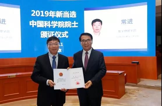 中科院党委书记、院长白春礼为新当选院士常进颁发证书