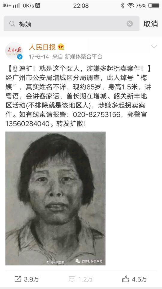 关于“梅姨”,增城警方于2017年曾发布详细通缉信息: