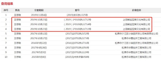 具体来看,(2019)沪0106执11712号限制消费令的执行申请人沈阳市睿凡传媒有限公司;(2019)沪0106执11713号限制消费令的执行申请人西安北国文化传媒有限公司;(2019)沪0106执11714号限制消费令的执行申请人成都柿子君文化传媒有限公司。