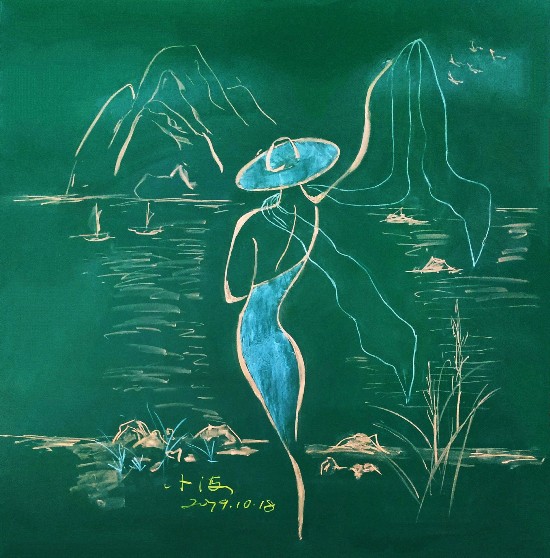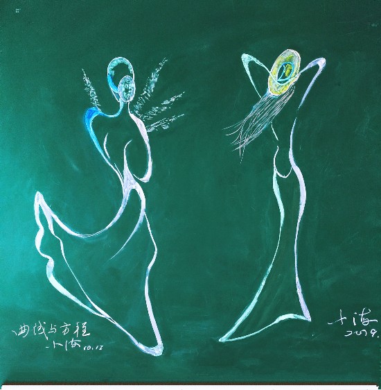 “我不是为了绘画而画,作用是辅助教学,让学生通过画更直观地感受到曲线的美,印象更深刻,认知更深厚。”朱中海说,虽然画作都是信手拈来,但他特别用心地给板书起了个文艺的名字叫《舞动的函数》,受到了学生的欢迎,从此便一发不可收拾。