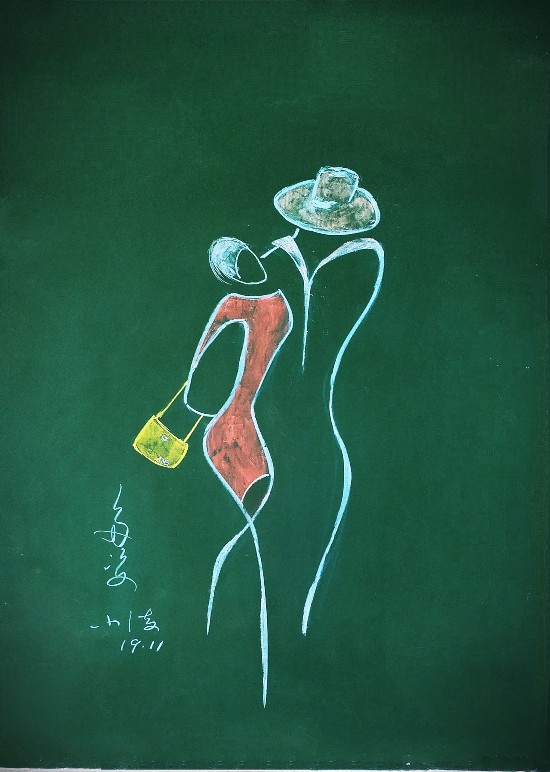记者看到,朱中海的粉笔速写系列还有《黑板上的律动》《点线面的美》等,都是将课堂上的即兴画作拍摄下来,二次创作做成PPT,完善课件,此外,他还有捕捉校园生活创作的《社团风采》,主角都是学生。