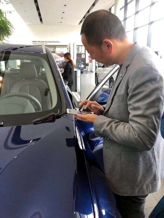 扬州市生态环境局先来到扬州宝华汽车销售服务有限公司,在查看了汽车车辆清单后,对展厅的所有新车进行监测。