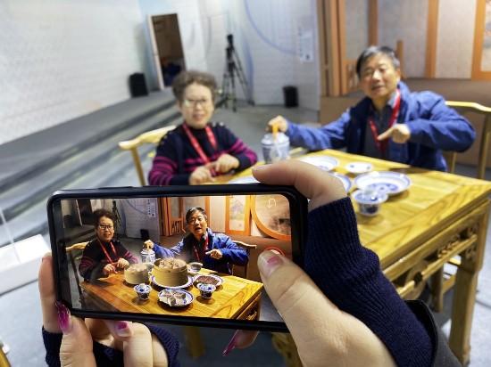 扬州刚刚荣获了“世界美食之都”,声名远播。现场的扬州早茶AR体验成为最火爆的体验项目。尽管八仙桌上摆着空盘子,只要观众下载APP对准餐桌,一桌丰盛的扬州早茶就出现在了手机屏幕上。工作人员介绍,通过AR技术,将虚拟世界的扬州早茶与现实世界进行“无缝”集成并进行互动,让观众身临其境。