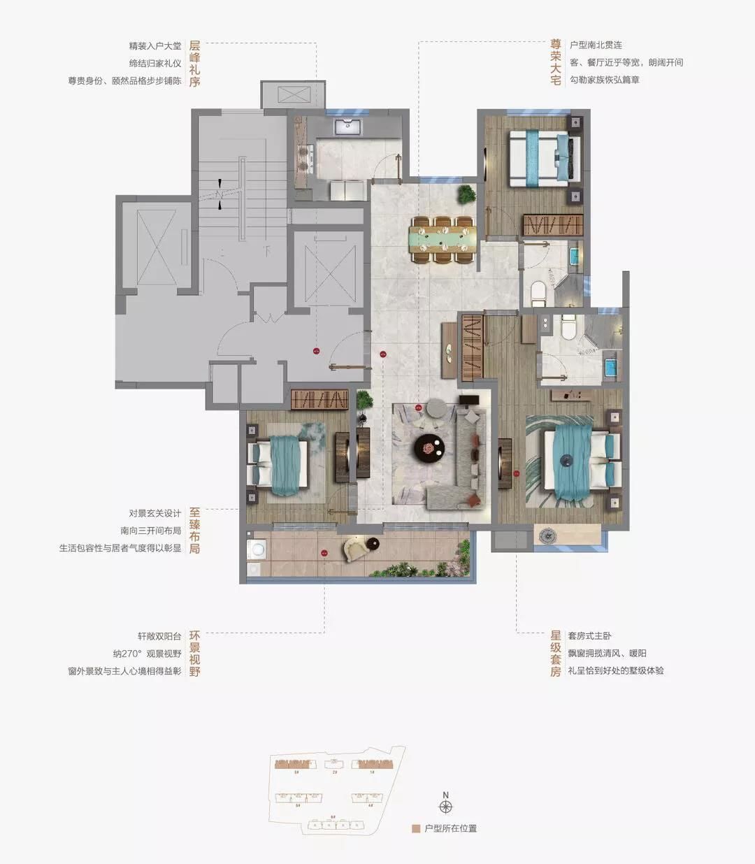 3号楼共有127㎡和144㎡两种户型产品,其中建筑面积约144㎡户型全部分布于东侧,仅17套,其余为建筑面积约127㎡户型,共计85套。无论是三代同堂,还是四口之家都能拥有奢适的居住体验,满足高端改善的置业需求。