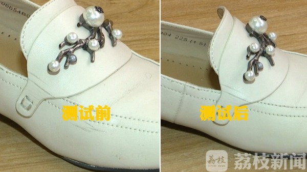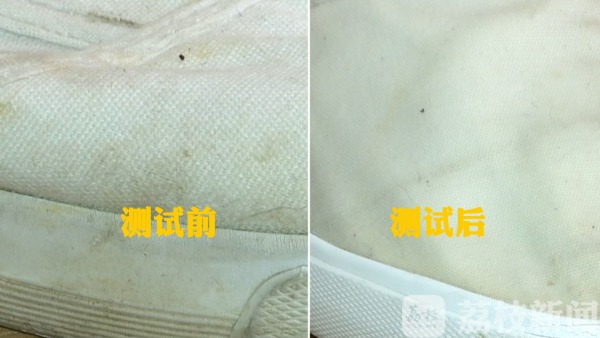 测试结果:橡胶处轻松变白,鞋面较深的污渍依旧顽固。