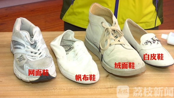 根据网络小妙招的教程,记者准备了白醋、牙膏、小苏打、洗洁精、洗衣液等等道具。而测试对象呢,就是网面运动鞋、白色小皮鞋、白色帆布鞋、以及绒面鞋。针对不同的材质,我们会采用不同的方法,来测试它们的清洁效果、以及清洗难度。并请皮具护理师李师傅,来给小妙招打个分。