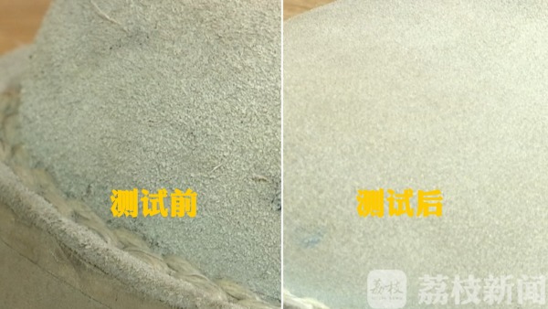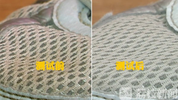 对于网面鞋,李师傅表示清洁度只能算是过得去,打分的话只能说是60分。绒面鞋,打分能算80分,“个人建议如果用洗洁精洗完之后,再过白醋这样会好一点,白醋有固色作用,混在一起洗艳度可能达不出来。”