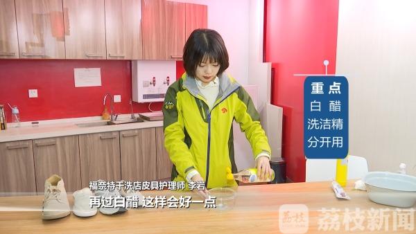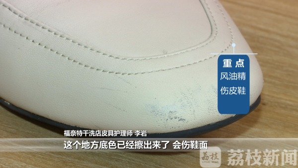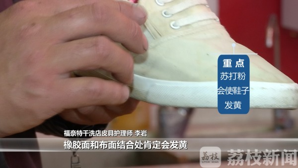 对于风油精擦皮鞋的方法,李师傅表示从专业角度来讲是不可取的,“会伤鞋面”。帆布鞋的清洁妙招,李师傅同样表示不可取。“用小苏打洗完之后,苏打液没有过干净的话,橡胶面和布面结合处肯定会发黄。”