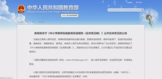 教育部官网11月22日发布《中小学教师实施教育惩戒规则(征求意见稿)》