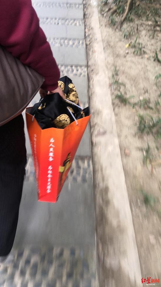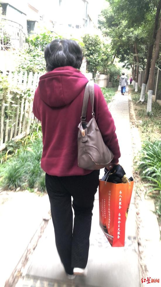 11月23日下午,红星新闻记者在流沙河家门口,见到流沙河妻子吴茂华女士,她戴着口罩,手中袋子里提着一件黑色的寿衣,黯然地走出家门。