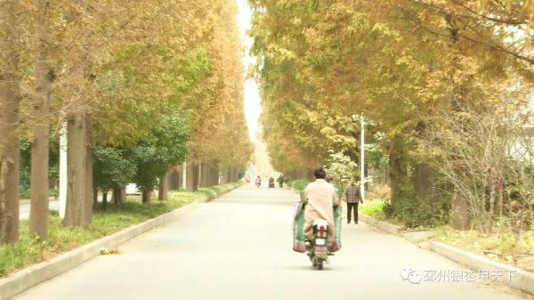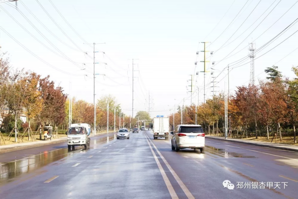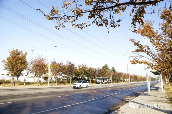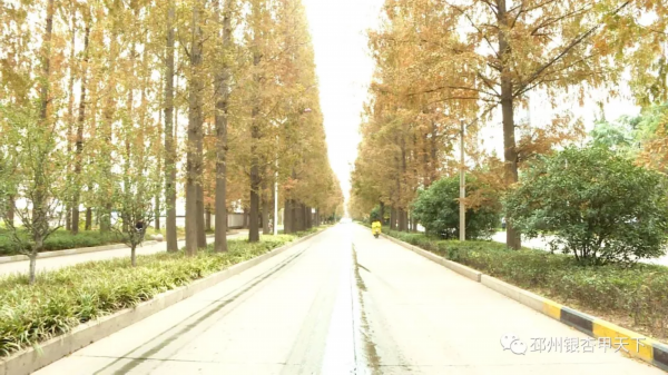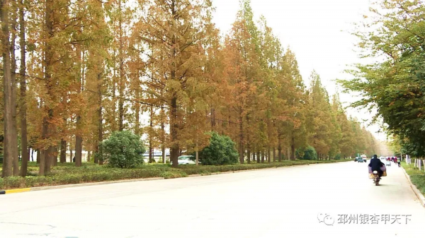 初冬时节,随着气温下降,邳州市部分主次干道两侧的水杉树叶开始微红,构成一幅色彩斑斓的美景油画。